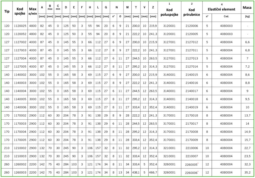 Ove spojke nude prednost aksijalnog fiksiranja bez razmicanja vratila, te dopuštaju izmjenu gumenih uložaka bez pomicanja uparenih strojeva. |